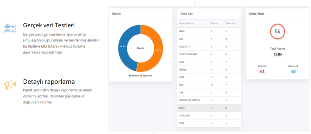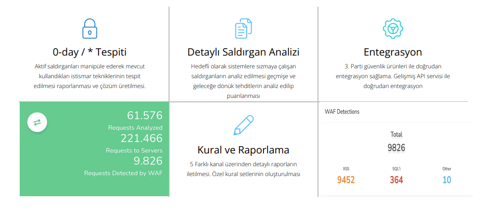 Gerçek zamanlı saldırı tehdidinin tespit edilmesi otomatik olarak WAF ve güvenlik ürünlerinde önlem alınması ve Güvenlik taramalarının yapılması.